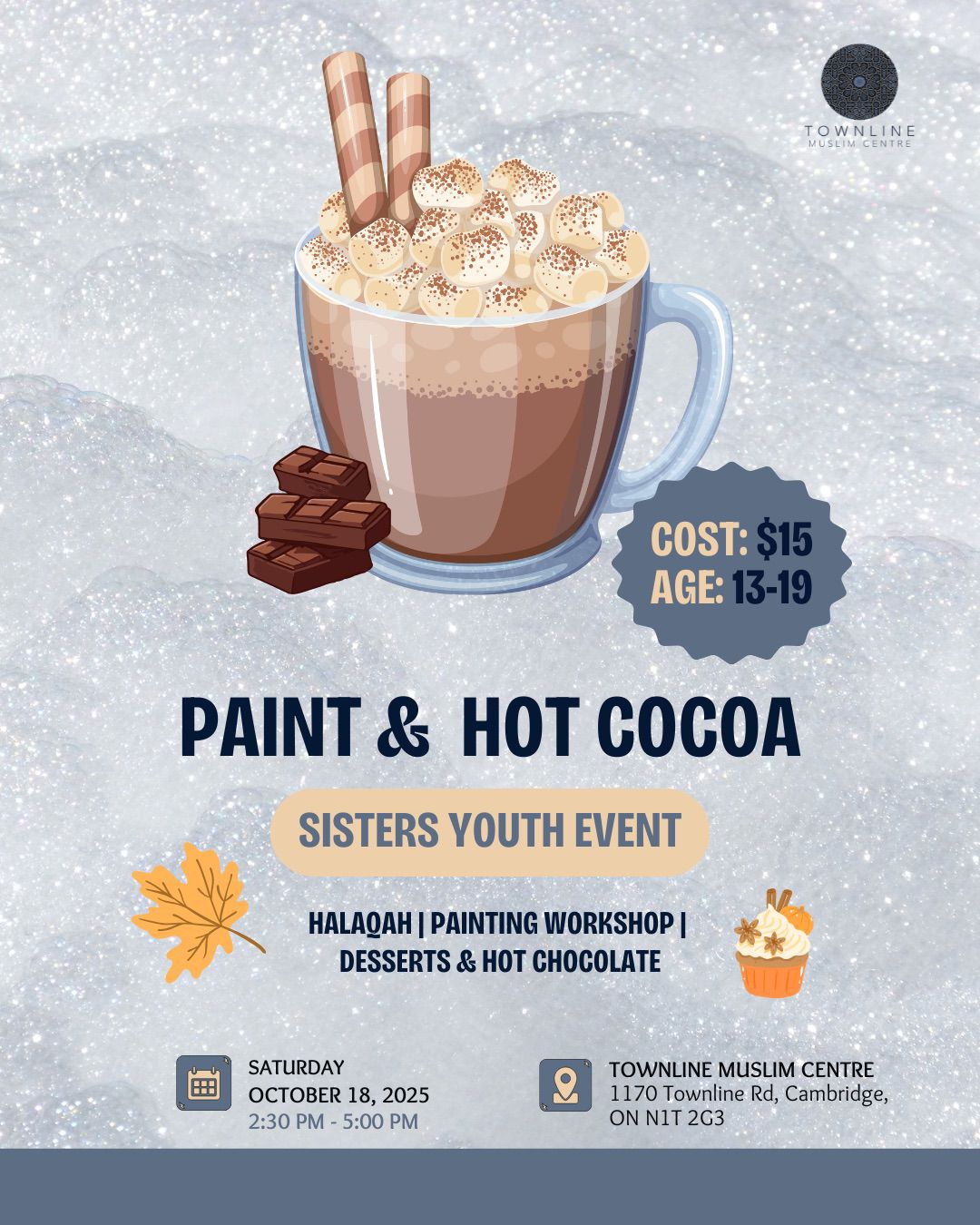 Enjoy an afternoon filled with an inspiring Halaqah, a cozy painting session, delicious desserts, and hot chocolate!