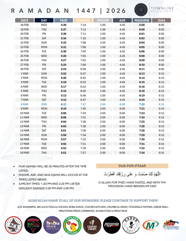 📅 Saturday, September 6 🕛 12 PM – 2 PM (Dhuhr Prayer) 📍 Townline Muslim Centre